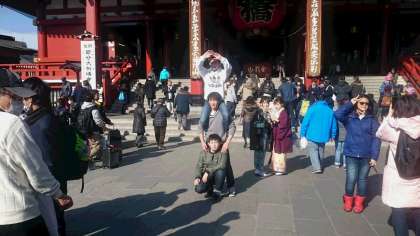 浅草寺周辺では生徒たちが浅草を満喫しています。(副校長)