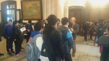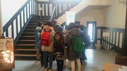 横浜市開港記念会館です。ボランティアのガイドさんが館内を案内してくださっています。(副校長)