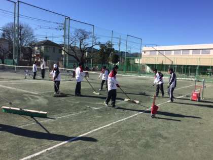 今日は試合のない男子部員たちがコート整備を行ってくれています。