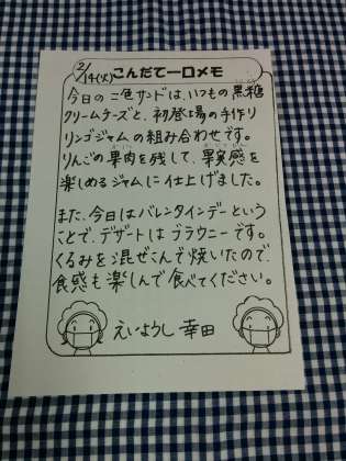 チョコレートの持ち込みは禁止でしたが、給食として食べることができてとてもよかったと思います。美味しかったですね。