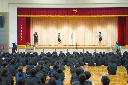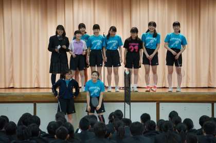 女子バドミントン部はネットまで準備して練習風景を紹介していました。