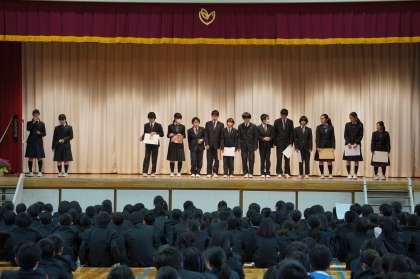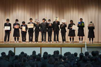 美術部は自分たちの書いた絵画を掲げて部の紹介をしていました。