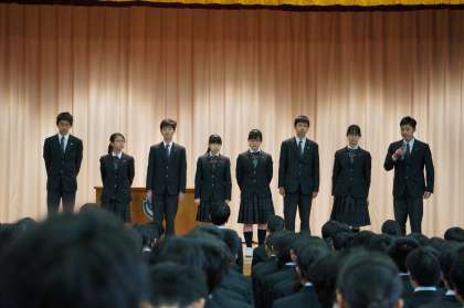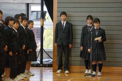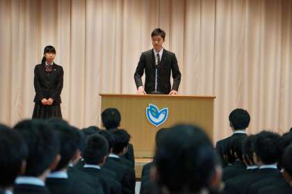 生徒会長からは自発的なあいさつの重要性についての話があり、最後に生徒会全員の紹介がありました。