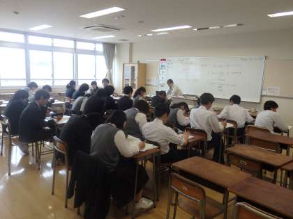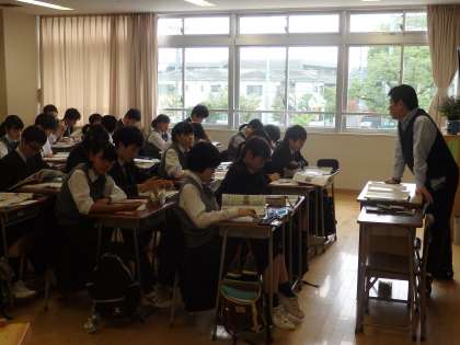 3年生の授業の様子です。社会の授業では、先生の熱心な指導が印象的でした。英語の授業では、一人ひとりが真剣に課題に取り組みました。理科の授業では、ICTを活用し、力学の内容をわかりやすく説明していました。中間考査もまもなくですので、どの学年も引き続き授業に意欲的に取り組んでいきましょう。(田村真)