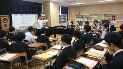 2年生の音楽の授業では、鑑賞と器楽を行っていました。