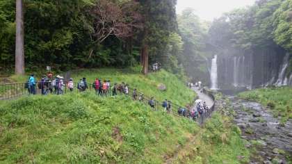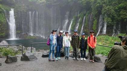 雨天コースに変更になり、白糸の滝を見学しています。(副校長)