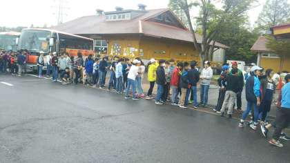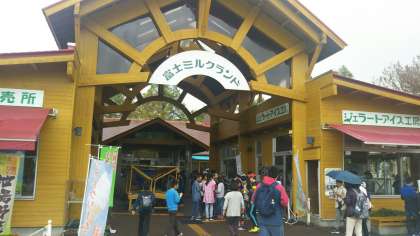 ミルクランドに到着しました。ソフトクリームとジェラートに長蛇の列が並んでいます。(田村真)