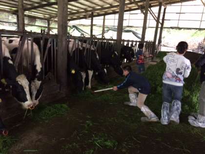 牛に餌をあげています。