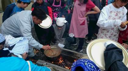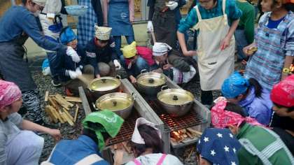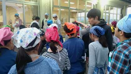 カレーづくり進行中です。先生方も見守っています。(副校長)