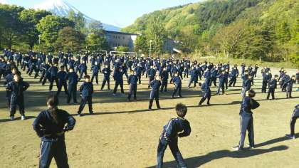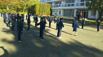 朝礼の様子です。ラジオ体操や実行委員の言葉がありました。昨日できたこと、昨日の反省を生かして2日目もがんばりましょう。(田村真)