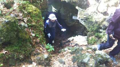 フィールドワークでは溶岩樹型に入りました。お疲れ様です。(田村真)