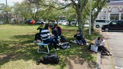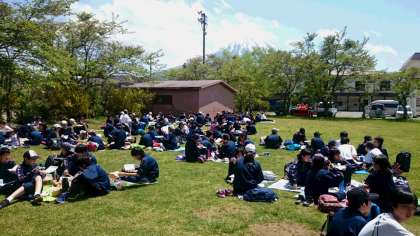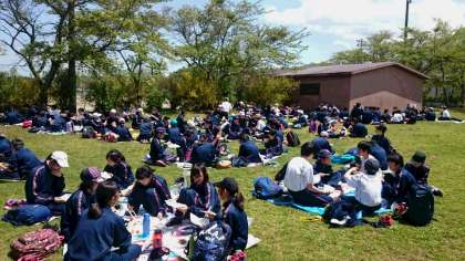 緑の休暇村でお弁当です。とてもよい天気です。(副校長)