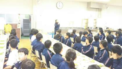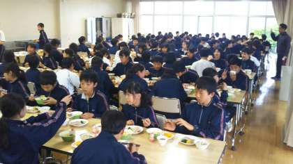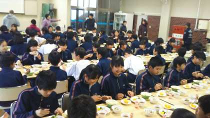 夕食の時間がはじまりました。食事係の働きでスムーズに準備ができました。(田村真)