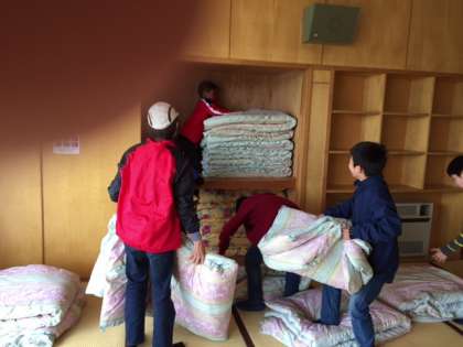 美化寝具係が布団の片付けをしてくれています。(大居)