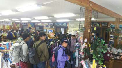 奥庭荘に到着しました。お土産タイムの様子です。(田村真)