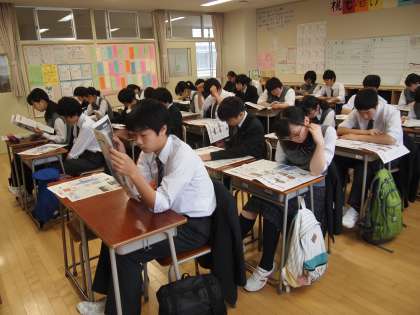 ほとんどの生徒は新聞を食い入るように読んでいました。