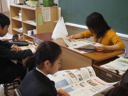 毎月第2土曜日の朝はNIEタイムとして、全校で新聞を読んでいます。