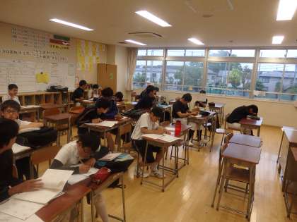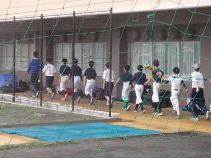 今日は天気が雨なので、野球部は都大会閉会式の行進の練習と、自習に取り組んでいました。部活と勉強を両立させてがんばっています。(田村真)