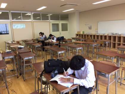 1年生は中間考査を金曜日に控え、放課後の時間を使って自習をしています。(大居)