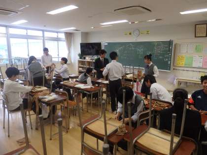 放課後の運動会に向けた取り組みです。3年生はムカデ競走の準備をがんばっていました。また、1年生は担任の先生と一緒にリレーの走順やクラス旗の打ち合わせをしていました。中学生は勉強と行事を両立させる事が大切です。どちらにも全力でがんばりましょう。(田村真)