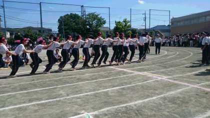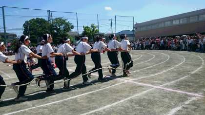 ムカデ競走は団体競技のメインイベントにふさわしい戦いになりました。(副校長)