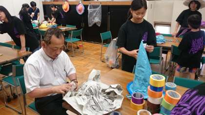 子どもぶんか村のボランティアくらぶが開いている帽子作りに、