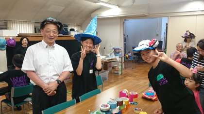 できあがった帽子をかぶり、生徒たちと記念撮影をしました。