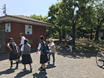 まちづくりセンターから希望ヶ丘団地をまわってゴミ収集センターまで歩きました。