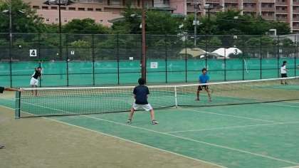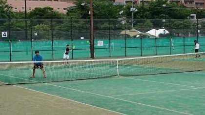 硬式テニス部が夏季大会の団体戦を戦っています。(副校長)