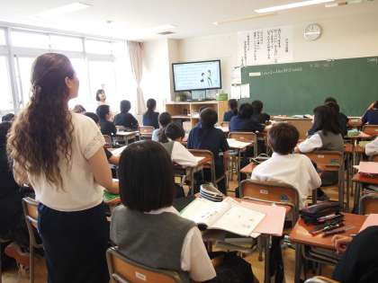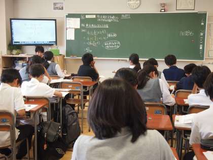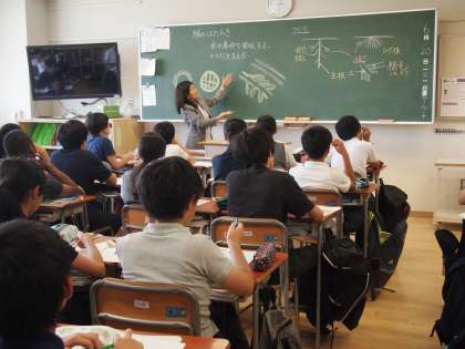 今週の金曜日から始まる期末考査を前に、暑さと6時間目という条件にも関わらず、生徒は疲れをみせることなく、真剣に授業に取り組んでいました。1年生の理科の授業では、根の働きについて、飴のなめ方を例に説明してみな納得した様子でした。また、数学の授業では、乗法除法の計算の答え合わせを、とても見やすいデジタル教科書の画面を使ってやっていました。英語の授業では、ALTの先生の発声に合わせ、クラス全体が大きな声で元気よく音読をしていました。