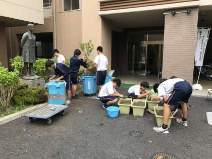生徒会役員を中心とした有志の生徒たちが、校内の緑化に尽力してくれました。