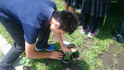 3年生の技術は、「菊の栽培」の授業の第1回目でした。