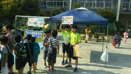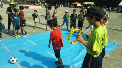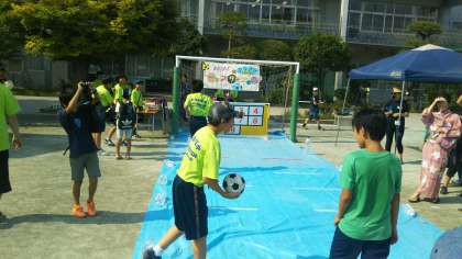 船橋小で行われている、遊び場ふなっこ子夏祭りで卓球部がボランティア活動をしています。キックターゲットの緑のTシャツが目印です。18:30までやってます。ぜひ来てください。(田村真)
