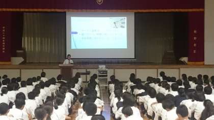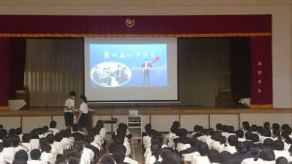 写真は2年生の学年集会の様子です。