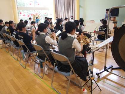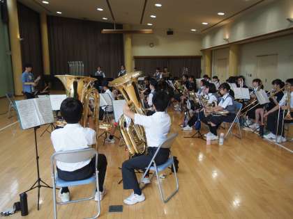 吹奏楽部は明日の「東京都中学校吹奏楽コンクール」に向け最後の練習に取り組んでいます。本番を見据え、船橋小学校のホールをお借りし、音の調整をしています。警備を担当している方から『廊下を通るとよい音色が聞こえてくるんです。とても上手だと思いますよ』とおほめの言葉をいただきました。夏休みに入ってから毎日練習してきた成果を全員で100%発揮してくれることを楽しみにしています。