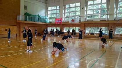 体育館の部活動も基礎トレーニングを中心に頑張っています。(副校長)