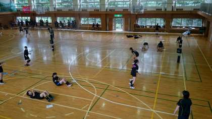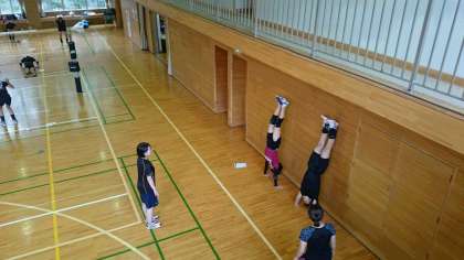 バレーボール部はサーキットトレーニングを頑張っています。(副校長)