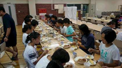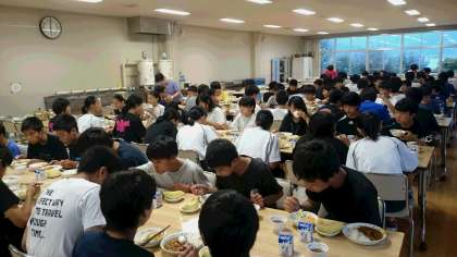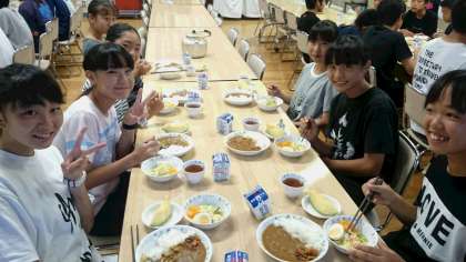 夕食です。カレーライスをもりもり食べています。(副校長)