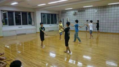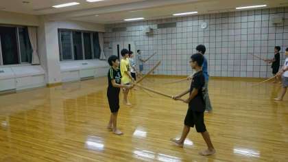 夜練習が始まりました。剣道部は木刀で型を練習しています。(副校長)