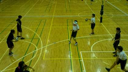 バレーボール部は基本的な練習に丁寧に取り組んでいます。(副校長)