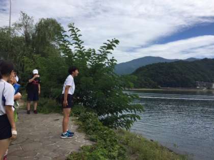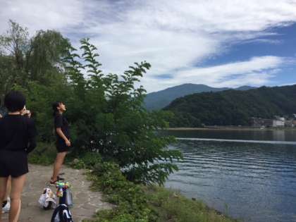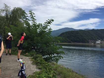 ランニング前には、1人ずつ今日の目標を河口湖に向かって叫びました。