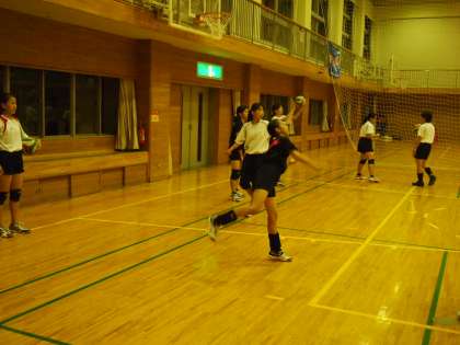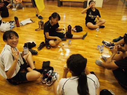 バレーボール部は、サーブ練習から始まりました。相手が来てほしくないコースを狙う練習です。最後はバナナと牛乳でうれしい栄養補給です。