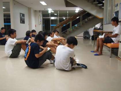 夜9時からの部長会です。今日の反省点、明日への意識など各部の部長や副部長たちの意識の高さには感心させられます。本日はここまでとなります。