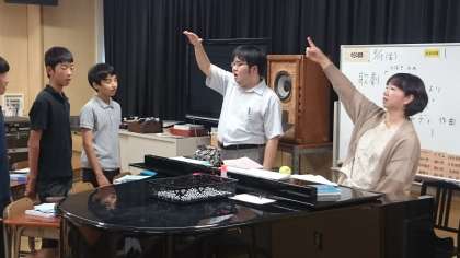 基本的な発声から始まり、パート練習、合唱という流れで授業を行っていました。