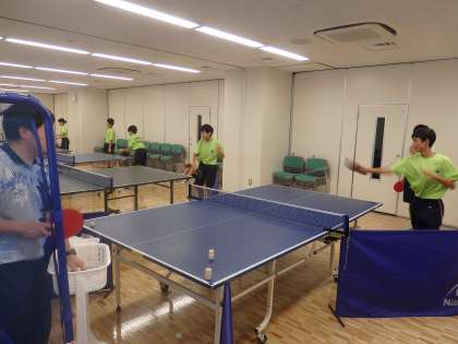 卓球部の活動の様子です。多球練習やマシーンを使った練習などに取り組んでいます。残りの練習も集中して取り組みましょう。(田村真)