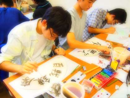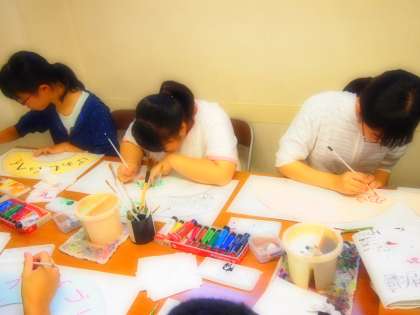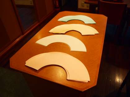 扇型の紙にデザインを描いていきます。これは三枚の薄い紙を張り合わせたもので間に香料も塗り込まれているとのこと。だからあおぐ度によい香りがするのですね。このあと、職人さんが88の工程を経て完成品に仕上げてくださるそうです。