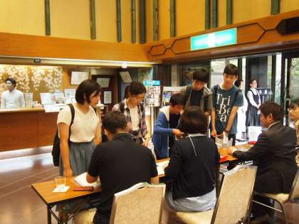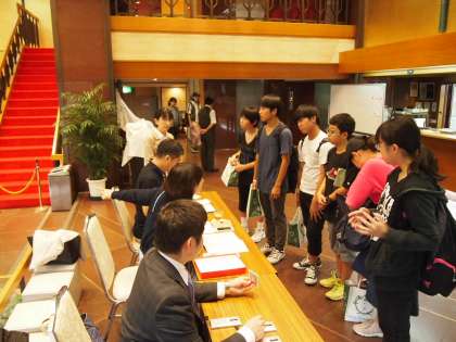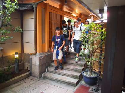 ほぼ予定通りにどの班も宿へ帰って来ました。お土産の袋をたくさん抱えながら宿の玄関を通過。宿の方にアルコール消毒のスプレーを手にシュッとかけてもらい部屋に入っていきました。