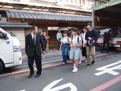 荷物を積み込んだら、タクシー行動へ出発します。「貸しきりだけど例えばお昼はそれぞれがバラバラに、あれが食べたい、これが食べたいとわがままを言って運転士さんを困らせることのないように」という昨晩の班会議の先生の注意を思い出し、フナキボらしいマナーの良さを発揮してほしいですね。