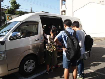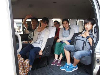 いよいよ班行動です。ワゴンタイプの広い室内のタクシーです。気を付けて楽しんで来てください!