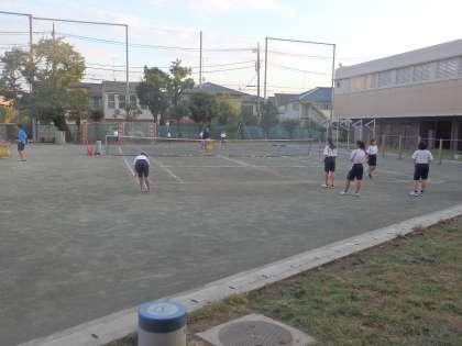 校庭での部活動の様子です。今日は硬式テニス部とサッカー部が練習を行っています。10月より最終下校時刻が18:00までになりました。集中して練習に取り組み、新人戦でも自分の力を発揮できるようがんばりましょう。(田村真)